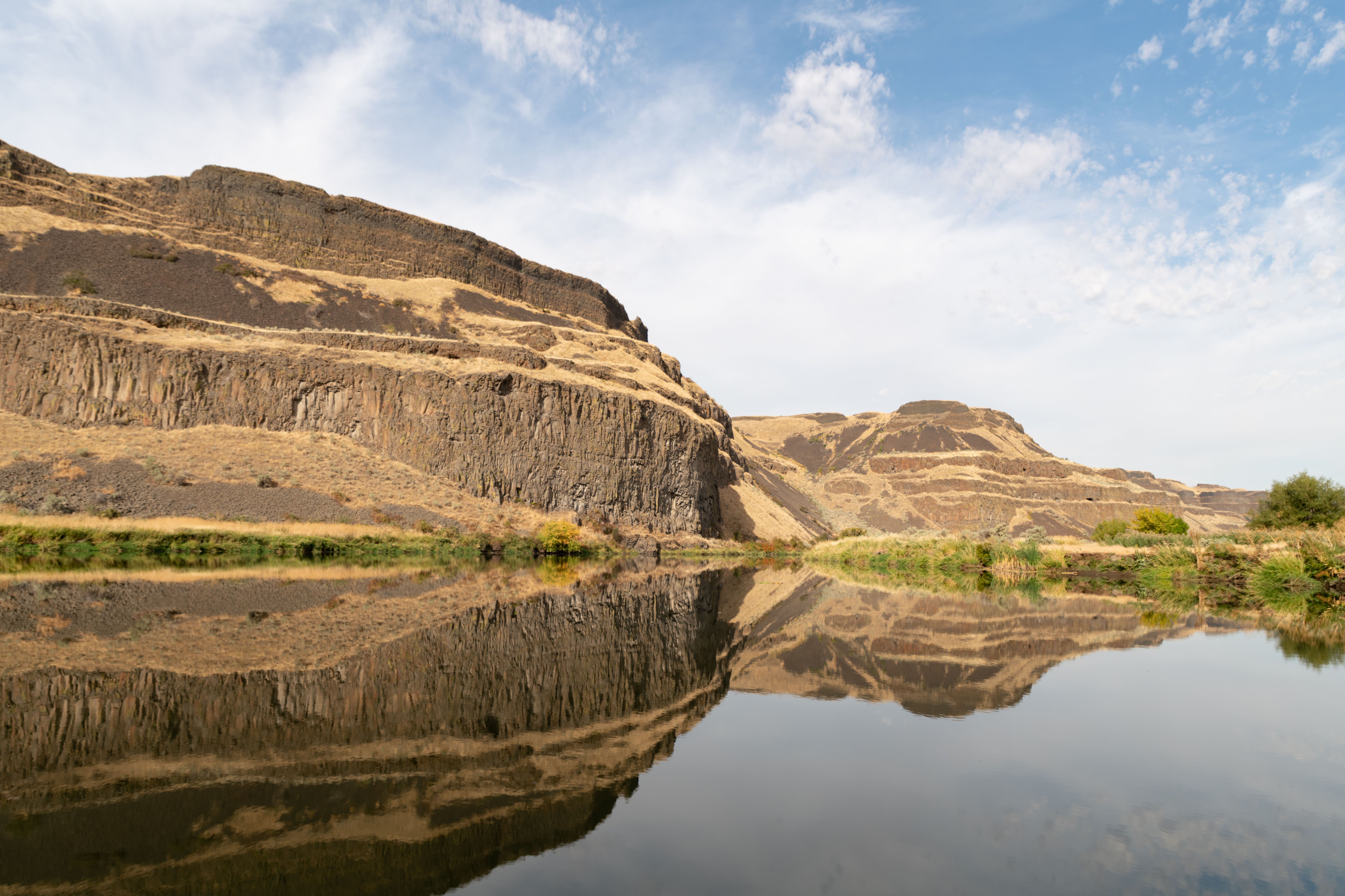 Morning activities were a choice of a 2.5-mile nature hike, or a 5-mile longer hike. The 5-mile hike was a lovely trek on the first scenic highway in the United States: Route 33. Mr. Sam Hill, lawyer and entrepreneur who wanted access to local waterfalls and scenic views, created the pass. He and his engineer, Sam Lancaster, designed a road of gradual grade, wider areas around corners, and one of the first guardrails. Our section was for walkers only, giving us great views. Ponderosa pines, big leaf maples, and colorful poison oaks were along the trail. Later in the day, we explored the Columbia River Discovery Center, a wonderful interpretive museum with a garden of plants identified by Lewis and Clark. A pond behind the center brought grace to the beautiful garden.