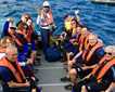 As we left the Antarctic Peninsula behind us, we were met by a fantastic surprise - no less than six fin whales feeding and playing in the swell alongside our boat. We all charged outside to take pictures of the whales - which were easily within 100m of the boat.