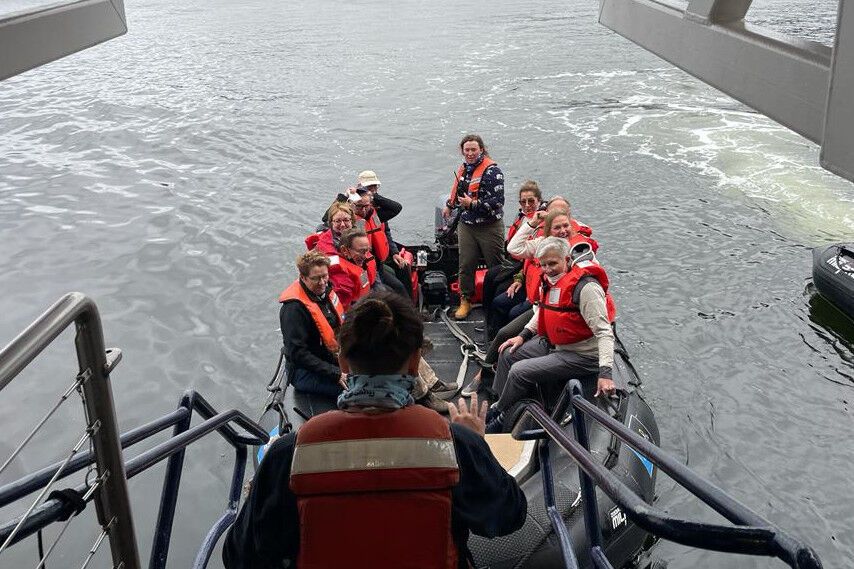 The rest of the day we explored inlets and rocky knobs in search of the animals who live here. Brown bears jumped in salmon streams, splashing their way to their next slippery meal. Mountain goats crossed precipices that looked impossible to achieve. A lone male killer whale patrolled the islands of the bay. Sea otters were everywhere. They floated over 1,100 feet of water. They rafted close to shore, and they slept right in the middle of boat traffic. Sea lions growled, and puffins flew in endless circles around their nesting island. All day, we lived in their world. All day, we were outside. We finished the day tired and happy, knowing what it means to be drenched in wilderness.