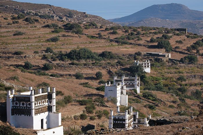 As we drove, we passed windmills and Tinos’s famous dovecotes. We stopped at one location and were able to photograph six elaborately decorated dovecotes dotted down the hillside. Over a thousand dovecotes on the island supply meat from the birds, guano for the fields, and a system for communication.