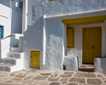 We boarded the busses and began our way toward the town of Pyrgos. The scattered little villages, the terraced landscape, the many churches, and the cows and goats grazing formed a picturesque vignette of this different and quieter world. Tinos is also known for its dovecotes, and our driver stopped on the way to give us a chance to take a picture of the small valley filled with the tiny houses. Dating from the Venetian times, each one competed in beauty.