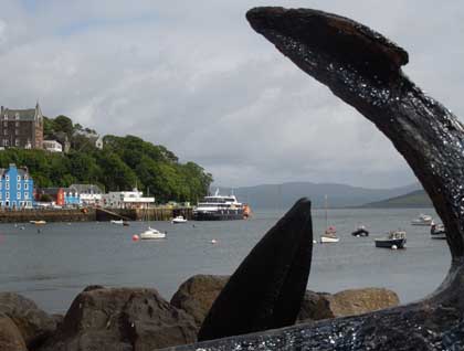 After a peaceful night alongside the dock in Tobermory it was nice to awake to the colourful little village nestling snuggly against the high bluff and sparkling in the intermittent rain and sunshine. A strong breeze was blowing but this did not deter us from joining Stewart, Konia and Steve in an explanatory walk through the quaint village. Despite its small size it contains a lot of historical and cultural places and oddities.