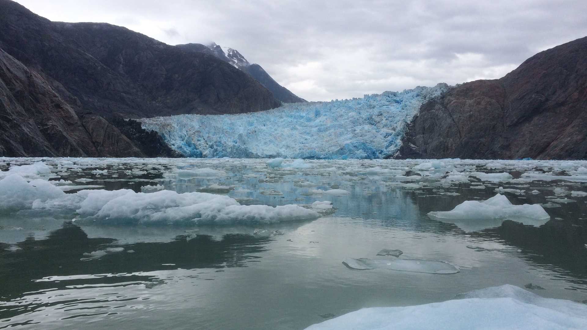 This morning’s operations at the face of South Sawyer glacier included everything we could hope for! There was sun, there was rain, there was an overcast sky, a bit of glacial calving, some goats, and abundant rock sausages, i.e. harbor seals. The ice was moving about quite a bit, making for challenging driving, but never fear, the cocoa boat made it through, and all souls were able to return to the ship for a sumptuous Greek-inspired lunchtime feast.