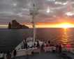 Soon we were on our way again, sailing down Endicott Arm, the rock walls around us almost close enough to touch. The narrow fiord created by the retreating glacier gave us extraordinary views of the power of these massive sculptors of the land. Sailing into the canyon made by relentless movement of ice made us feel small as we realized the scale of the geological undertakings still happening as the ice retreats. When we reached our destination, boats were lowered and set forth to explore the glaciers face in our small inflatable boats. As we moved closer, we stopped to view icebergs already let loose from the river of ice. Waterfalls flowed from every side, further adding to the spectacle before us. We settled in about a quarter of a mile from the glaciers face and drifted in hopes of seeing the ice release a glacial calf, but only the occasional flush of a slide of ice would grab our attention. We thought, today the glacier sleeps, her thunder saved for another day. Then, as we turned to head back to the ship, a massive eruption of ice shot from below the surface. They are called shooters, large pieces of ice that are calved from below the surface, were the face of the glacier still runs deep. When they surface, it is like a mountain of ice being born from the sea, water cascading from the ice as the shape of the new iceberg comes into view for the first time. A grand finally to a grand adventure on board the National Geographic Sea Lion.