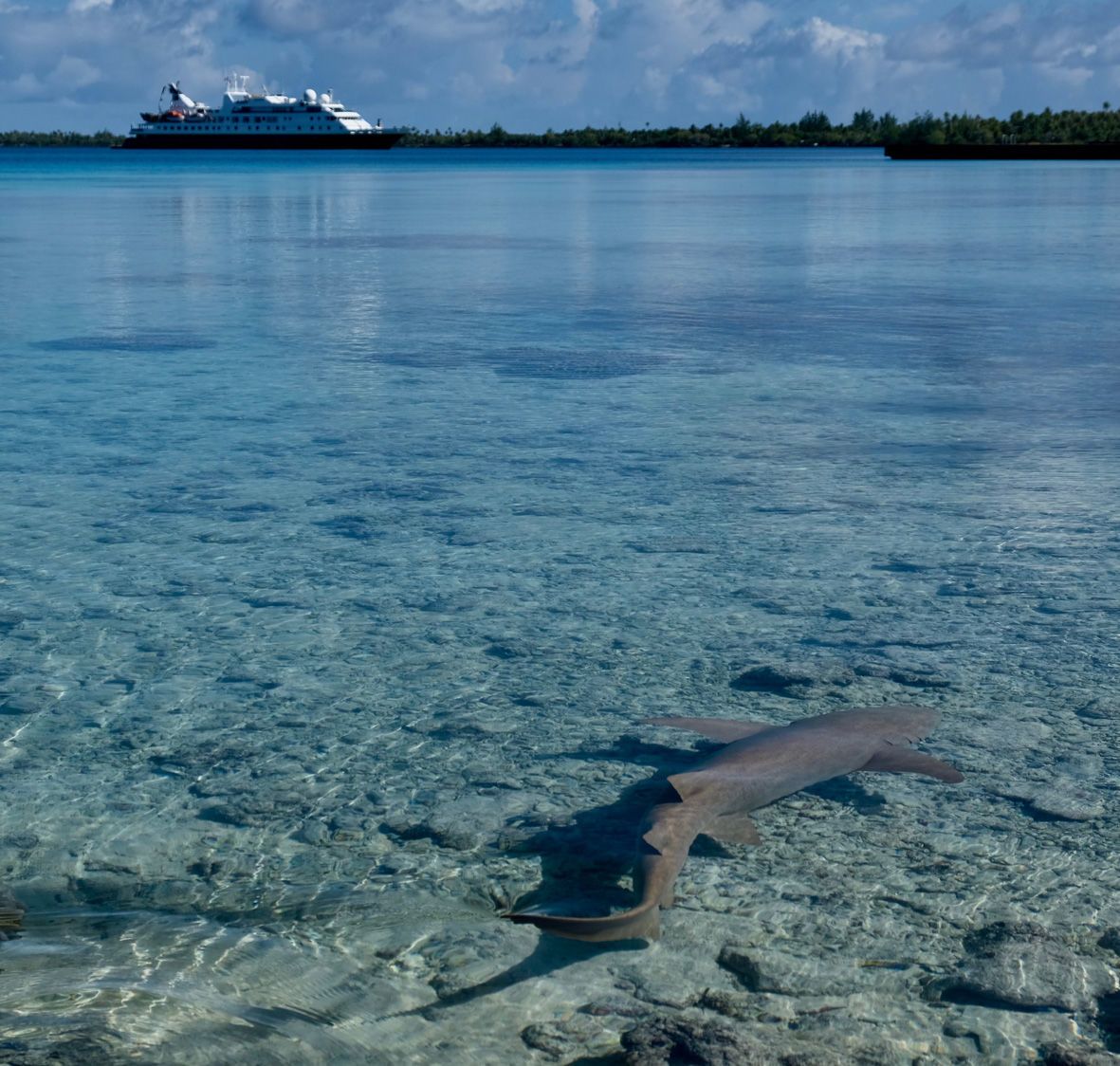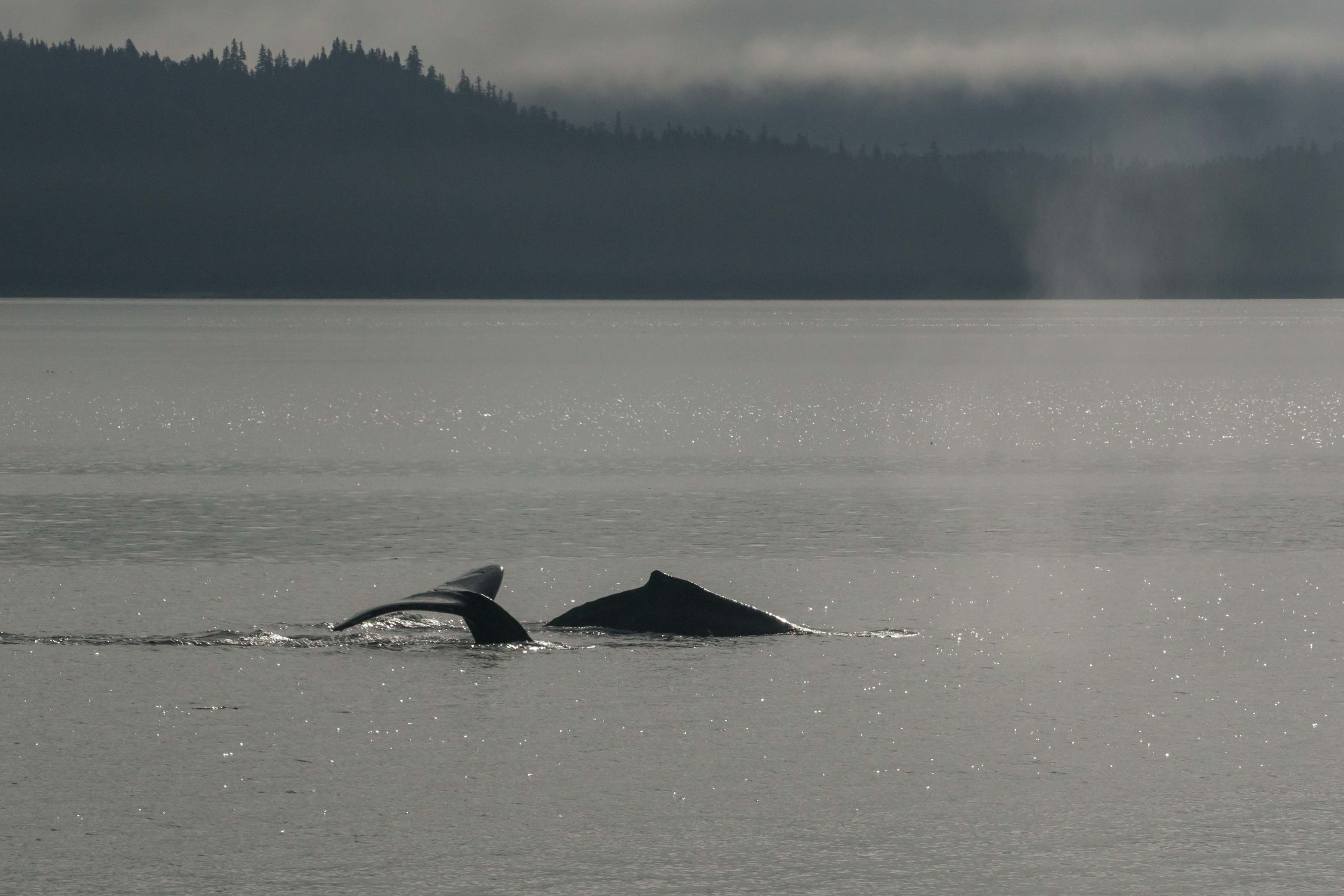 After a steamy frothy espresso and some toe-touching with our wellness specialist, our blood was flowing properly, and we were ready for another day in the Great Land. Diners were joined for breakfast today by a humpback whale cow and calf engaged in restful “logging” activity, setting the stage for a serene morning sail. They turned out to be the first of many majestic M. Novaeangliae we would encounter, most being much more active. We soon found ourselves approaching Morris Reef, and surrounded by not one, but two groups of humpbacks engaged in cooperative bubble-net feeding behavior! We spent time with both pods, viewing and photographing many spectacular lunges, with up to nine of these leviathans’ gaping maws breaking the surface simultaneously and in tightly choreographed formation. Our Global Explorers were then given an opportunity to receive Zodiac driving lessons from our USCG-licensed captains. All souls returned. We continued into the storied seven-mile-long Sitkoh Bay. Here we hiked an old logging road; amongst towering Sitka spruce, frequent bear signs, black-tail deer, and banana slugs galore! Once the wind abated, we also had the opportunity to launch our kayaks and enjoy a leisurely paddle in the bay, with views of National Geographic Venture , bald eagles, and an early 1900s cannery sight. At the end of the day, the ship embraced our return with cocktails, charcuterie, and conversation. A typically highly succulent dinner was followed by a night-capping presentation on birds of the region from our resident ornithologist.