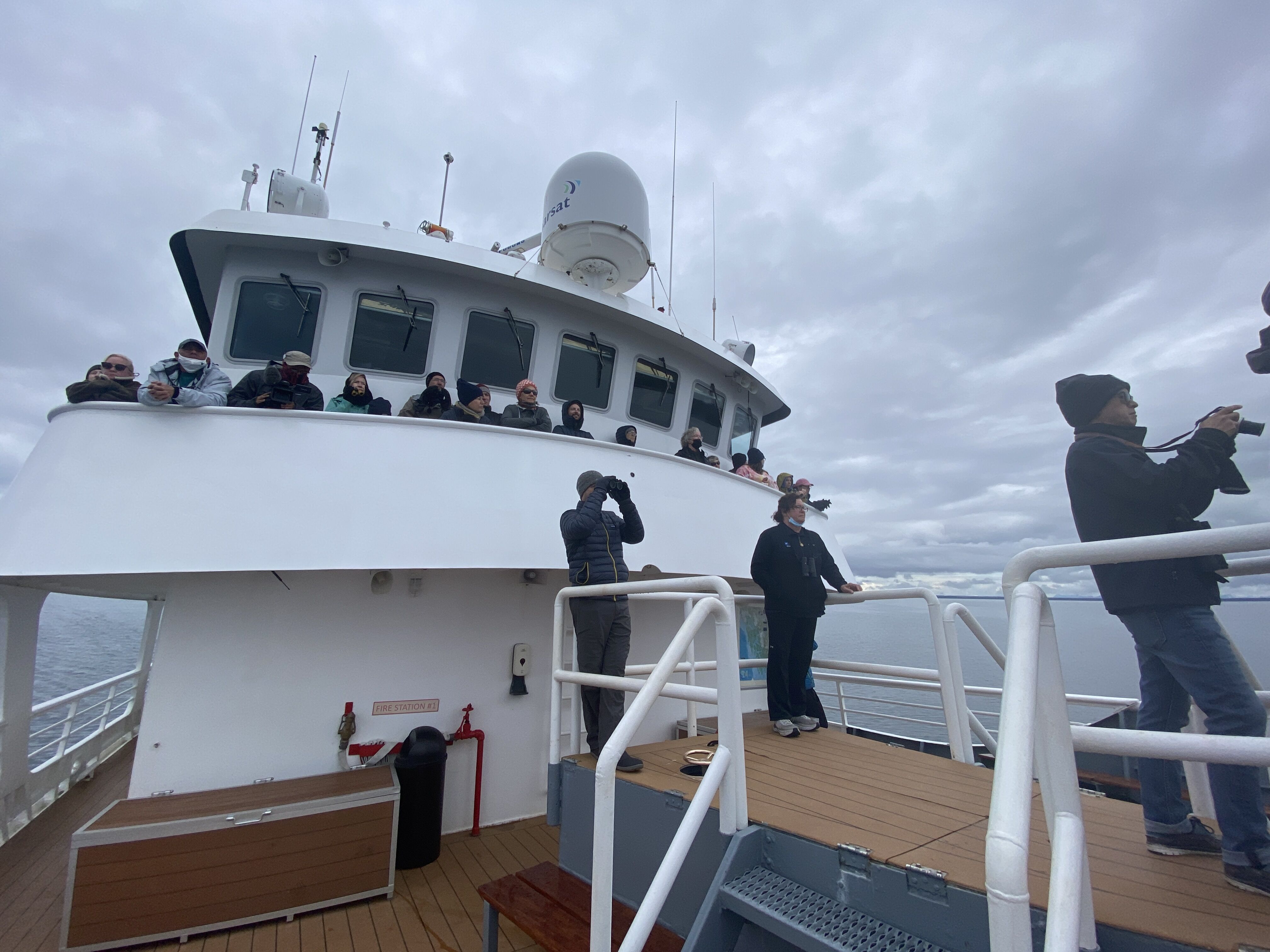 Today we woke up to a gorgeous day here in Southeast Alaska aboard National Geographic Sea Bird . The waters were glass calm as we enjoyed a delicious breakfast. Right as we were finishing up, the bridge spotted a lone male orca swimming around us. We all went out on the bow and were able to see the massive six-foot dorsal fin of the world’s largest dolphin species as it swam around the ship. After we watched this majestic creature fade into the distance, we began our sail up the breathtakingly beautiful Endicott Arm fjord. This area is hard to put into words. We sailed past icebergs with granite walls rising 3,000 feet out of the water directly on either side of the vessel. Waterfalls cascaded down from hidden snowfall and hanging glaciers. Glacial silt coming from the rock flows and mixes with the sea, creating a beautiful green hue in the ocean. Shayne, our Certified Photo Instructor, gave a presentation on smartphone photography and taught us all the settings for these incredible devices. It could not have come at a better time as the Dawes Glacier came into view. After a wonderful lunch, we headed out in our expedition landing crafts to explore the ice field in front of the glacier. Being this close to icebergs and the face of an active tidewater glacier is life changing. The blue of the ice, the crackling of icebergs, the haul outs of harbor seals, and the crash of calving is an experience that will not soon be forgotten. Back on the ship, we were treated to yet another amazing meal before heading into the lounge for a dual presentation by Naturalist Frankie Wilton and Certified Photo Instructor Shayne Sanders. They taught us about "The Story of Southeast Alaska" by talking about the important forest ecology and how to incorporate composition to capture this magic through the lens. It was an amazing first day, and we cannot wait for what is to come.
