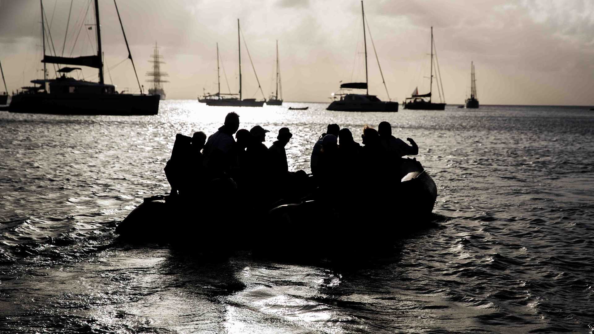 After lunch we entered the country of St. Vincent and the Grenadines where we plan to visit two islands: Union Island and Bequia. After a busy day yesterday today was planned as a perfect Caribbean vacation day: a bit lazy, sunny, with big blue sky and even bigger blue ocean. Zodiacs took us to a white sandy beach for a relaxing afternoon offering a bit of everything: sunbathing, swimming, snorkeling, interacting with local people and enjoying a rum punch or pain killer in one of two little beach bars: “Shark Attack” and “Boll Head!” The owners, very funny local people with nicknames exactly the same as their bars’ names, remember us from the past years so it is always a joy to come back and see them again. The snorkeling was very easy today so most of the time we spent in the clear water observing schools of grunts, different kinds of butterfly fish, trumpet fish changing colors as their camouflage technique or small cute trunkfish trying to escape from our curious eyes. Sunset happened exactly at the same time as moon rise while we were preparing to take the last Zodiac back to the ship.