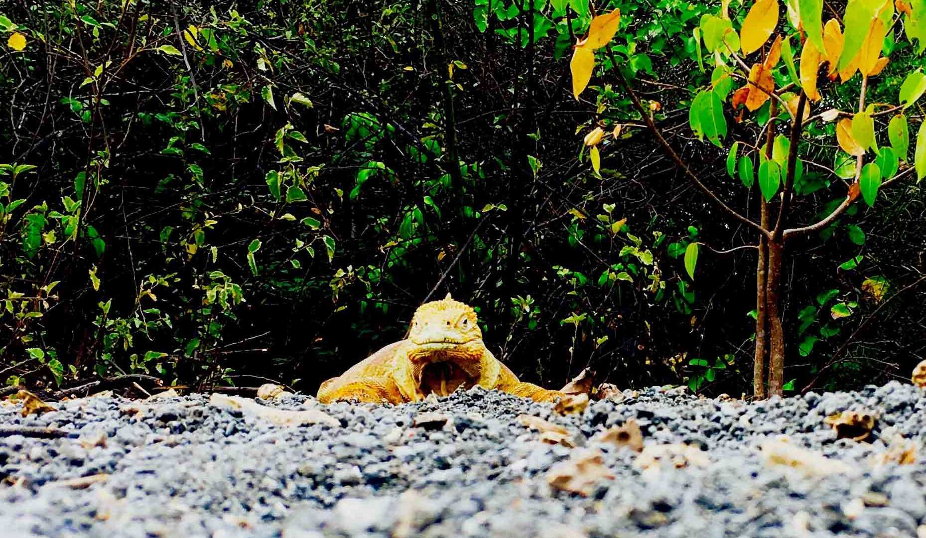 As I am writing this report, I reflect on how privileged I am to work in such a spectacular location as the Galapágos Islands. Today we started our morning with an adventurous hike on Urbina Bay, with many wildlife encounters. As we entered the trail, we spotted a young giant tortoise from the Alcedo Volcano. After five minutes, we spotted another adult Galapágos tortoise and a few steps later two more! Everyone was excited as these encounters are possible but not frequent. Finding such extraordinary creatures walking and roaming on volcanic terrain is a unique experience. At this time of the year it’s possible to encounter an abundance of flowering plants, with yellow being the dominant color. As part of the amazing canvas, land iguanas covering the path, just made our adventure even more wonderful. We spotted at least 10 land iguanas coming out of their burrows to warm up before looking for some cactus to munch. After we finished this great walk, some of us decided to take the option of a mega-swim! We succeed on covering more than 1 kilometer from Urbina beach to the National Geographic Endeavour. Part of the great adventure and exercise, swimming such a distance in the Galapágos is also a great opportunity to spot tortoises and schools of fish that joined us all along the way. With such an active morning, everyone was hungry and ready to be delighted with an Ecuadorian buffet of various local foods.