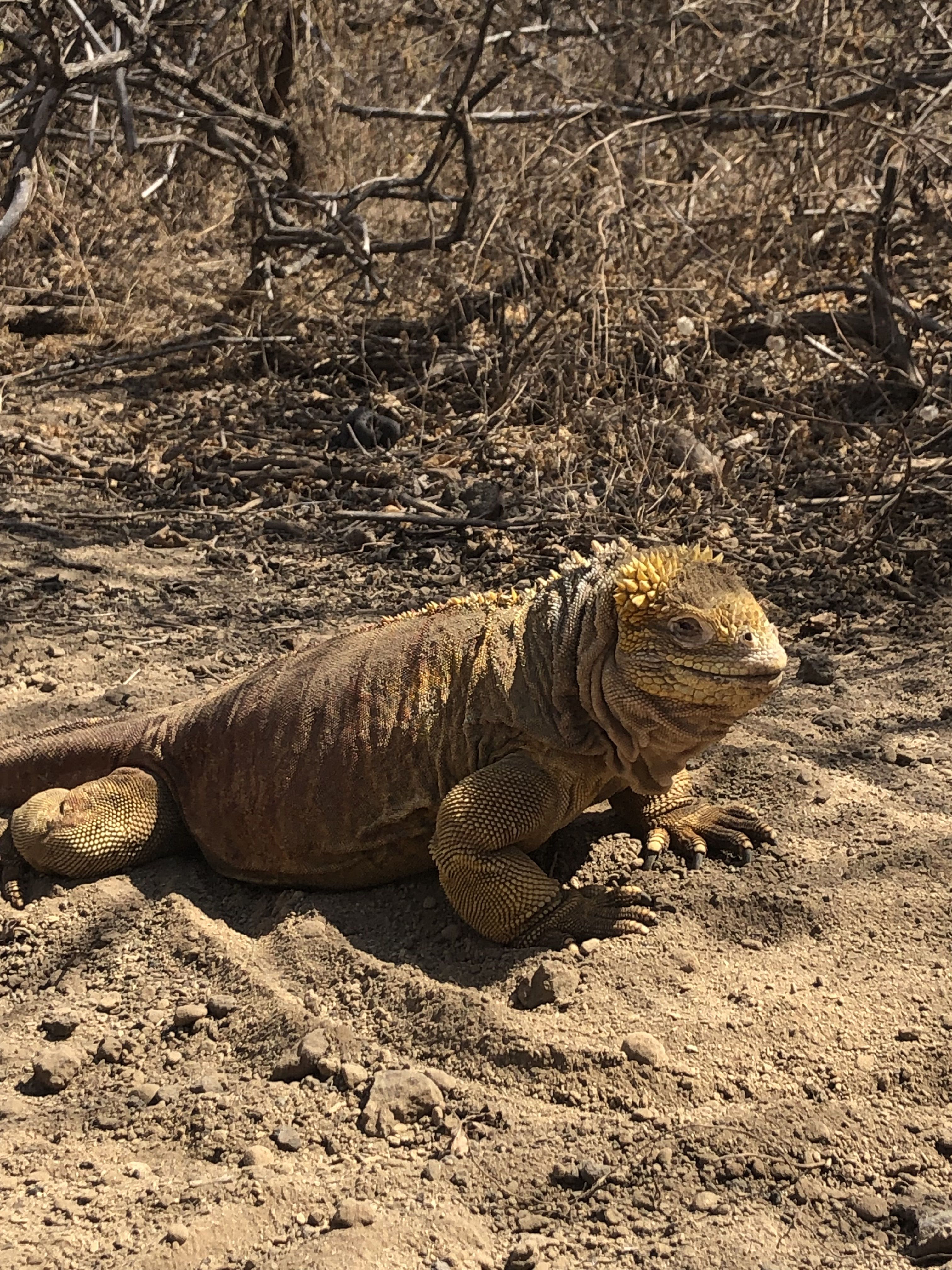 Today aboard National Geographic Endeavor II we had the opportunity to start the day with our morning walk at Urbina Bay, a black sandy beach located on the rim of Alcedo volcano on Isabela Island. As we walked along the trail, we had close encounters with yellow land iguanas and giant Alcedo tortoises! After the hike, some guests returned to the ship by Zodiac, and others had a refreshing swim at Urbina Bay beach, sharing the space with pelican birds that were feeding at the coast. Today we had a delicious and traditional Ecuadorian buffet lunch where we learned the proper way to eat ceviche.