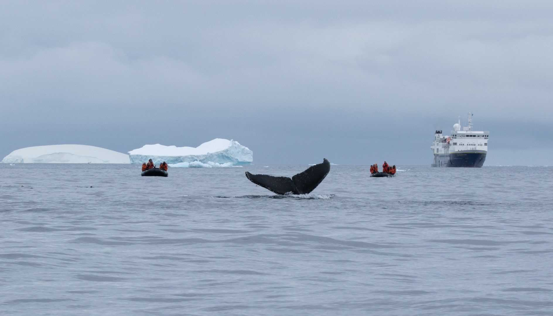 The afternoon was spent exploring Neko Harbor which takes its name from a whaling ship operated throughout this region. The sun was out, the water was like a pond, and the surrounding scenery was dramatic. As some guests got up close with gentoo penguins on land, others cruised in Zodiacs watching several humpback whales feeding among the broken ice and icebergs. It was a magical afternoon enjoyed by all.