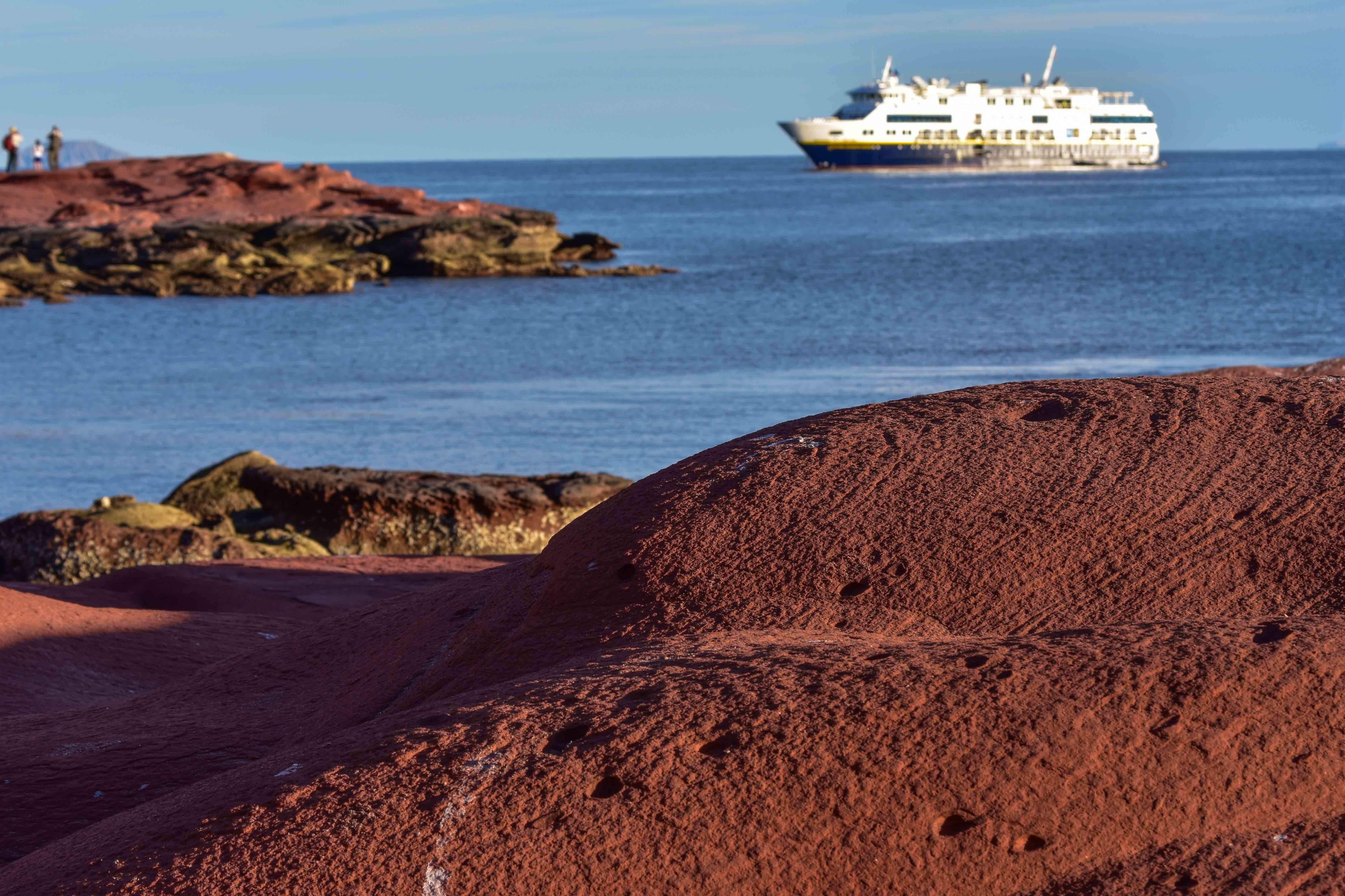 The National Geographic Explorer arrived at Useful Island, so named because whalers could easily climb to the top and get a 360-degree view of the surrounding waters to look for whales. Many guests followed their route and headed for the top of the island towards the navigational aid. Other guests boarded Zodiacs for a cruise around the island in search of whales to photograph.