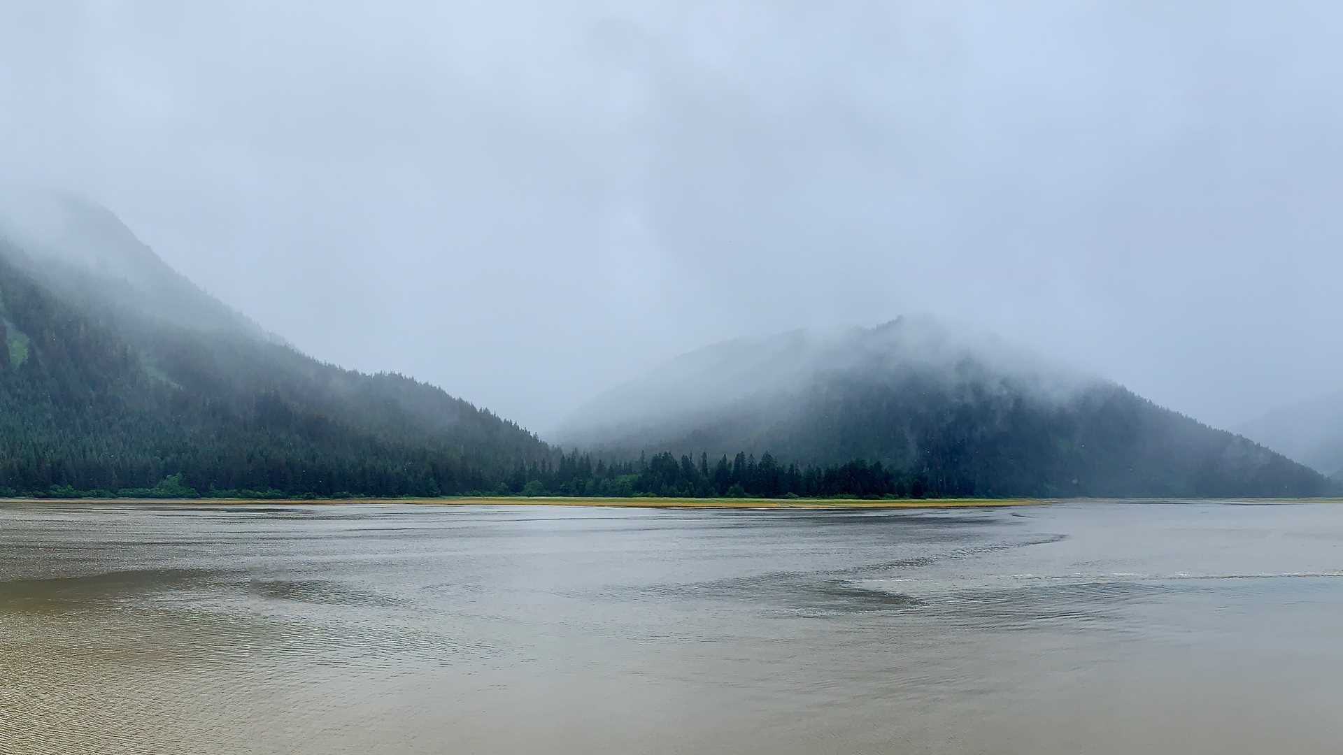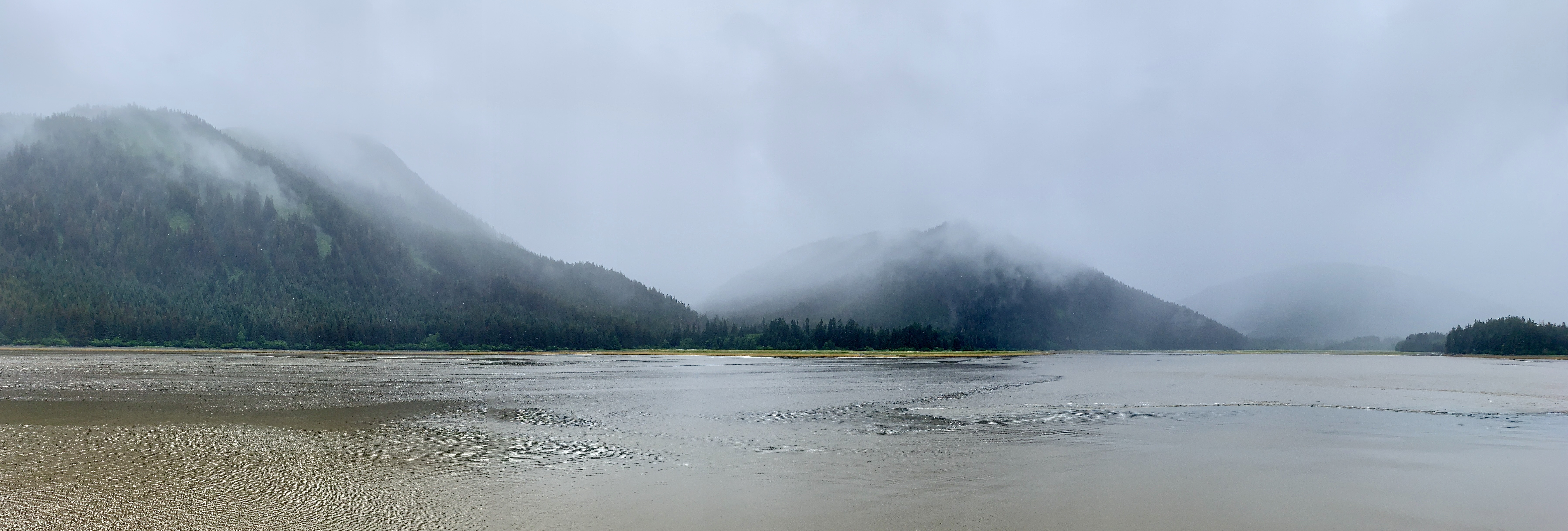 The final full day of our voyage began with a light drizzle, quickly turning into a substantial rain, but we were not deterred in a morning of exploration. Precipitation here is a normal requirement for the lush rainforest, the open muskeg, and the tumbling salmon streams, washing sediment and organic matter off the steep hillsides and from the organic soils into the tidal inlets.