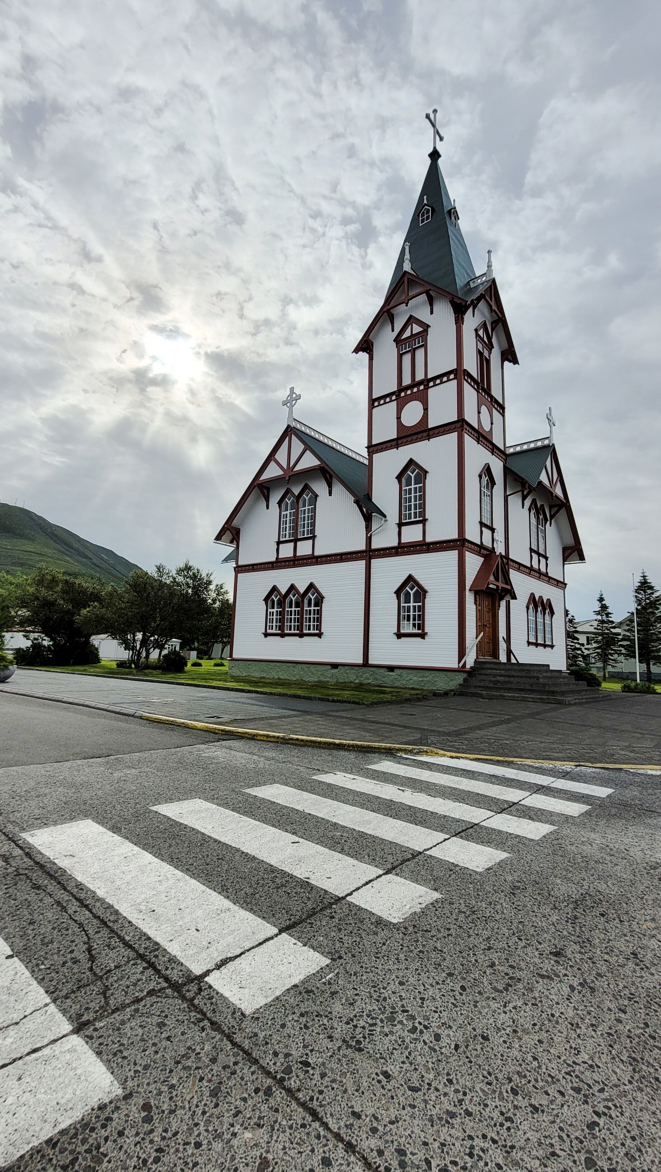 In the museum, we were treated to a viewing of one of the original anoraks found in a burial site from over 500 years ago just across the bay from the town. We happened to be visiting the town on a Sunday, and many guests were able to witness a Sunday mass in the church on a particularly special day that included a baptism, with many women in traditional dress for the occasion. Another part of town that drew the eye was a giant-sized mailbox on a hill. For many people in Greenland and Denmark, just nearby this town is the home of Santa Claus. Children from around Greenland and Denmark write letters to Santa that end up here in the mailbox–if the correct postage is provided.