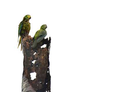 The legend of Velluda is interesting: The indigenous people here believe in ghosts, and this place got its name from the spirit of a “hairy” woman, that used to be seen by locals. Velluda means hairy in Spanish. Although the name is unusual, this site is spectacular. We went began our exploration early this morning, before breakfast. We quickly found a tree covered by dozens of red-bellied macaws, and after few minutes of intense searching by our local guides, we spotted several blue and yellow macaws. These are beautiful birds, whose colors create a nice contrast with the inversion layer of the jungle at this time of the year. We also spotted some other bird species that are commonly found here, such as crimson crested woodpeckers, oropendolas and orioles.