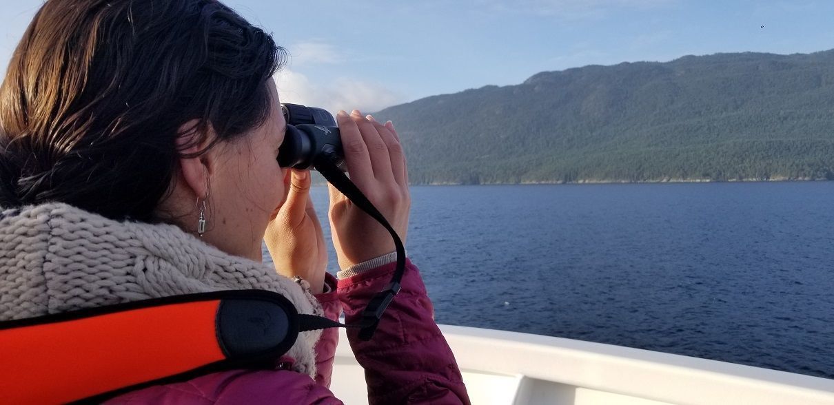 On our first full day aboard National Geographic Venture , we started the day early to catch the right currents to enter Princess Louisa Inlet. We watched the sun rise over the mountains as we cruised via Zodiac through this deep fjord system of British Columbia. Evidence of glaciers was everywhere—from U-shaped valleys to sheer rock faces. We spent the morning soaking in this magical place. Harbor seals, Barrow’s goldeneyes, and bald eagles greeted us as we cruised toward shore for our first hikes through the coastal temperate rainforest. Guests learned of the Douglas firs and western red cedars that adorn the region, as well as the rich understory of mosses and fungi. After a chilly morning hike, we headed back to the ship and started cruising out of Jervis Inlet. We enjoyed the rare warm and sunny weather, not often experienced in mid-October in the Pacific Northwest, and we even saw two humpback whales close to our ship. After a bright red sunset, guests settled into the ship for nighttime recaps of the day and a presentation by National Geographic visitor, Ashli Akins. What a wonderful way to start our trip! Photographers: Kelly Ferron, Naturalist , and Alex Rubenstein, Photo Instructor