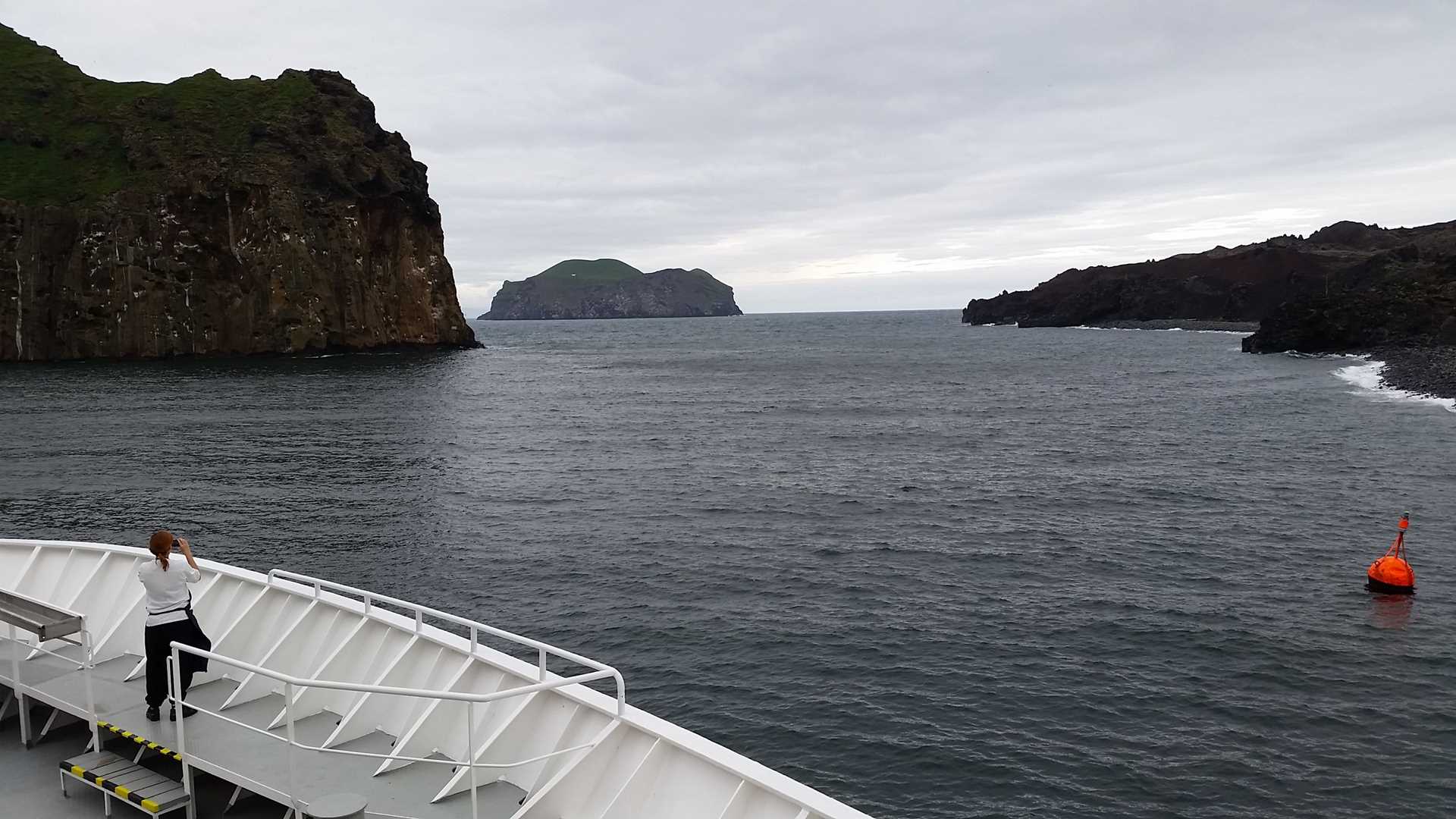 Before recap, the ship stopped to see Elephant Rocks, a series of caves and spectacular columnar jointing. Even the dessert tonight was volcano-themed: chocolate lava cake. After dinner, the ship navigated around Surtsey, a brand-new island created by the 1963 cinder cone eruption. The night concluded with a beautiful music concert by our guest musician Hafdis Huld.