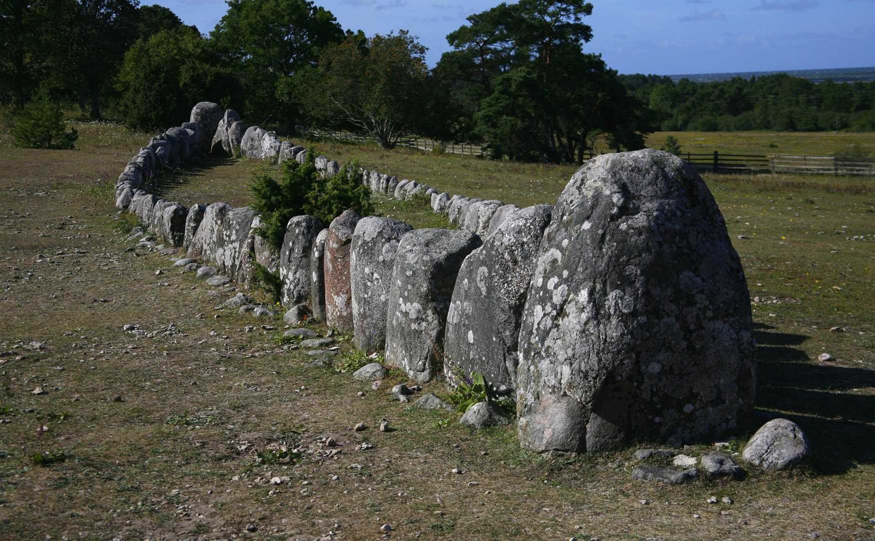 This morning we came alongside in the small harbour of Visby on the island of Gotland. The town was designated as a UNESCO World Heritage Site because of the wealth of its medieval period architecture, which includes over two miles of intact wall, towers, gateways, erstwhile merchant houses, a cathedral and numerous churches. Our focus this morning was an exploration by motor coach of the coast lying to the south. Our first stop was at a remarkable prehistoric site near Frojel. This consists of a Bronze Age boat-shaped grave dated to around 1,000 BC. Archaeological excavation here revealed cremated human remains and associated grave goods. This tradition continued right up into the Viking Period many centuries later when high status individuals were interred in longships within burial mounds. We then drove to a small medieval church which was founded in the thirteenth century. The ceiling above the main alter and portions of the walls were decorated with fine paintings and the church is still used for Divine worship. A short stop was made at a small traditional fishing station. In bygone days local farmers would stay here for a number of weeks each year to fish for herring and cod, an important supplement to their diet. Each family had its own small wooden hut where they could also store their fishing equipment. Members of those same families now use them for holiday accommodation. On our way back to the ship for lunch we were dropped off just outside one of the main original gates of Visby and walked down through the medieval core of this picturesque town. Preparations for the annual re-enactment of the infamous Battle of Visby were underway. Hundreds of participants were dressed up in contemporary costumes and bands of opposing warriors practiced their manoeuvres.
