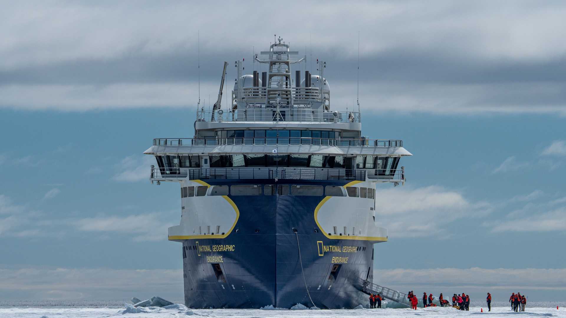 There are few places on the planet as spectacular as the Weddell Sea. Visiting this part of Antarctica is often synonymous with little sleep. Our adventures here began late last night, when we were lucky to spot a group of Type B killer whales. Their exhales were audible in the calm waters and the sky slowly turned red as the sun set behind tabular icebergs on the horizon. It wasn’t long before we were woken up by the sounds of the National Geographic Endurance navigating through sea ice early in the morning. All eyes were on the lookout enjoying the scenery as we made our way towards Snow Hill Island. Parking into the fast ice, we had the perfect setting for Naturalist Carl Erik Kilander to tell the story of Ernest Shackleton and the original Endurance. We rugged up to spend the morning in the sunshine walking on the fast ice, enjoying amazing views of the ship, toasting with champagne, and the company of curious Adelie penguins and snoozing crabeater seals. To make the day even more perfect, we were treated to an awesome burger-day BBQ lunch – a luxury Shackleton and his crew certainly never experienced while in this location – just before spotting an Emperor penguin on an ice floe. As we cruised north out of the Weddell Sea and Antarctic Sound in the evening we enjoyed our last views of tabular icebergs and the Antarctic continent, ready to continue on our journey in the Southern Ocean.