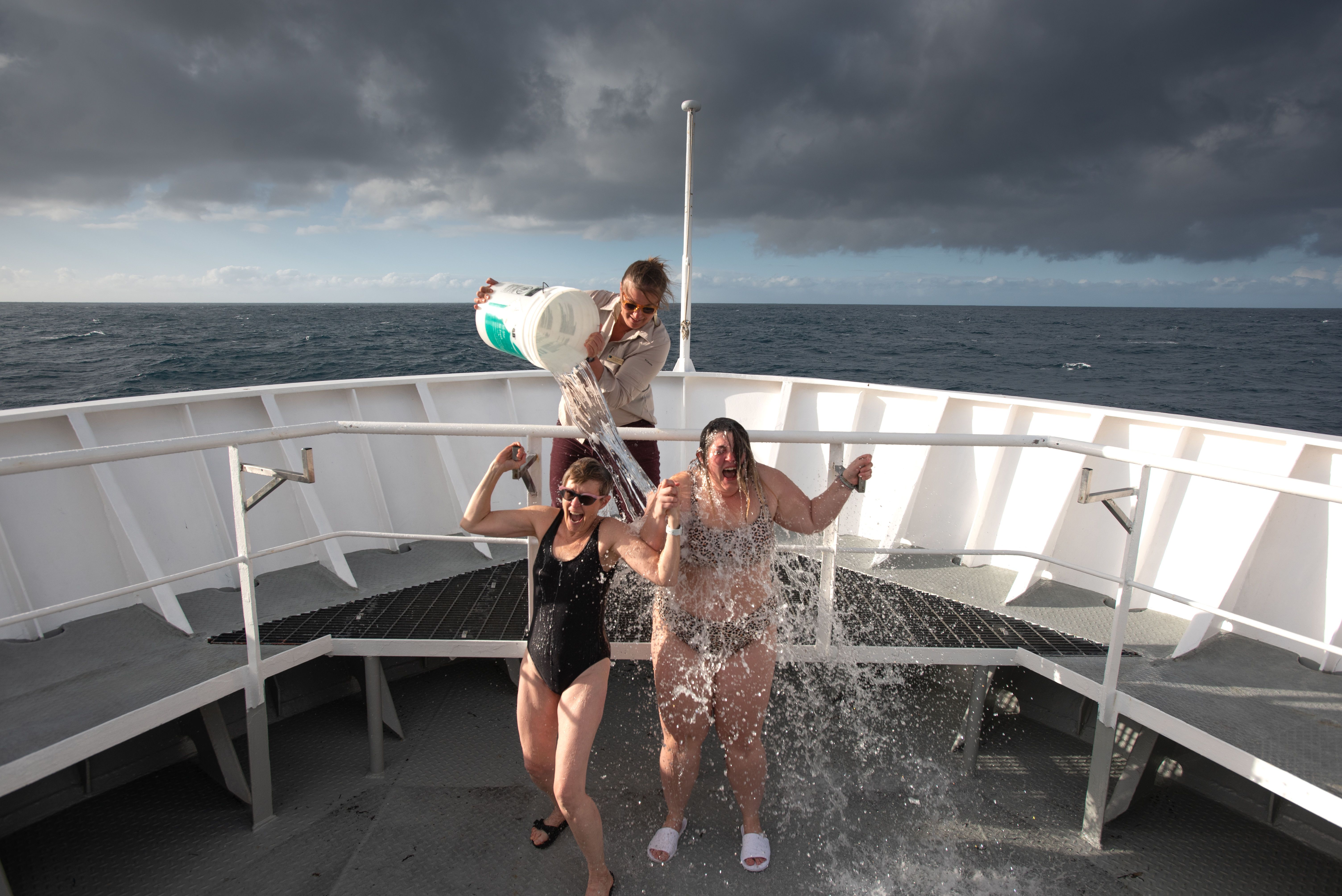 After time in the ice our leaders decided to head north, weaving our way between two large storm systems on the way through Drake’s Passage. As folks were not able to complete the polar plunge on this voyage, a couple intrepid guests took to the bow for a personal polar plunge administered by our incredible Assistant Expedition Leader, Alex Van Nostrand. As the mild seas waned folks joined the staff team of the National Geographic Explorer in the lounge for recap as we moved through the South Shetland Island group. Recap moved on to a beautiful dinner prepared by head chef Sara, enjoyed by all.