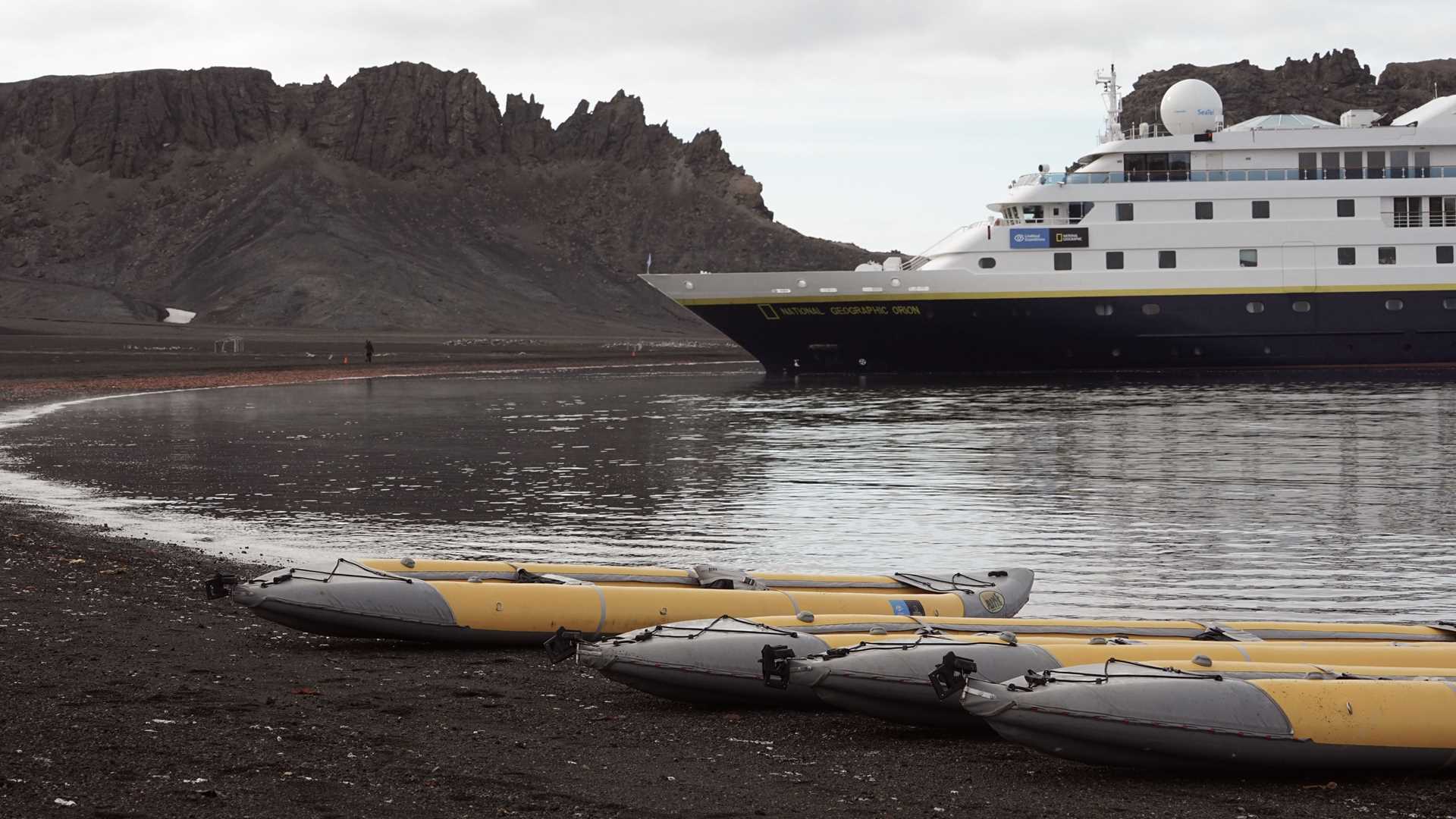 This last day of expedition in Antarctica was a great success. The kayaks were launched early in the morning, and guests could enjoy a calm morning off Deception Island, kayaking and exploring the artifacts and structural remnants from the whaling period and later British scientific interests. While a few penguins and seals occasionally showed up on the beach, everybody could enjoy the views of National Geographic Orion parked in the loose volcanic tephra close to shore. During lunch, the bridge team repositioned the ship to Livingston Island, to make this season’s first visit to Hannah Point. A limit of 50 guests ashore at Hannah Point turned into a split landing and presentation onboard, so everybody had a chance to enjoy the wildlife ashore and a talk on krill by naturalist Marylou Blakeslee. Hannah Point has a high concentration of nesting birds and elephant seals usually hauls out on the beach. This was a good way to end our expedition at the Antarctic Peninsula, and tonight we will start our journey back to South America.