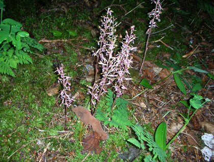 Each one of these activities turned out to be very interesting, since in the hiking we ploughed through tough mud that threatened to pull off our boots. The forest was cool and quite dense, as western hemlock was already growing among the Sitka spruce. In this forest we had the opportunity of seeing orchids, albeit not big and purple on the trees, but very small on the ground. One of them was the pink coralroot, which has no chlorophyll, but obtains its food from dead organic material in the ground. Kayaking was something else, as we could approach a big iceberg stranded on the beach, and even lick it. No, our tongues did not stick to it!