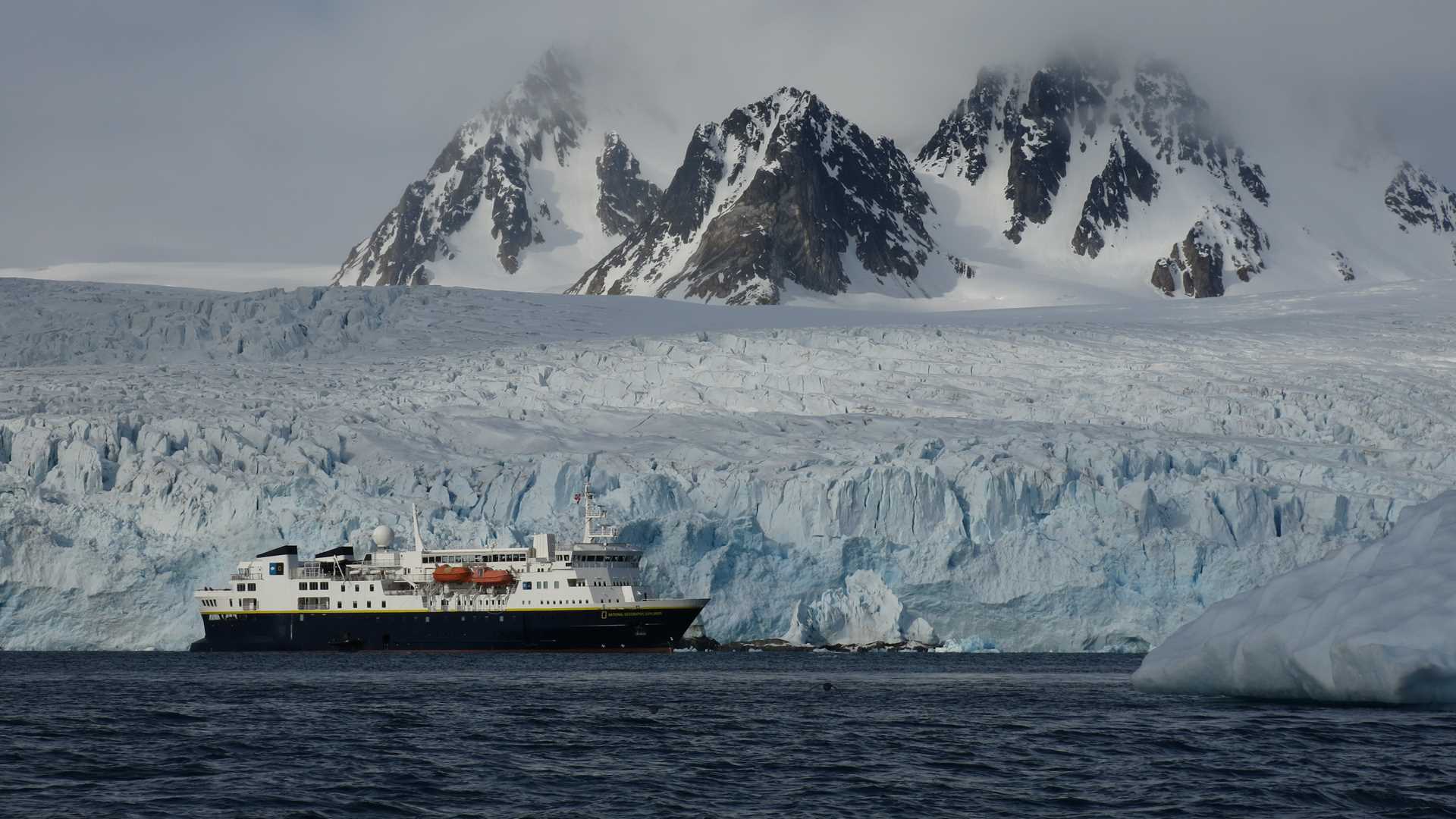Immediately after breakfast we donned our warmest clothes and stepped into a bright and sunny glacial landscape and were whisked away in Zodiacs. The large Monacobreen Glacier loomed from one side of this giant fjord system to the other. Today the glacial front has split into two as it has retreated over two miles in the last decade alone.