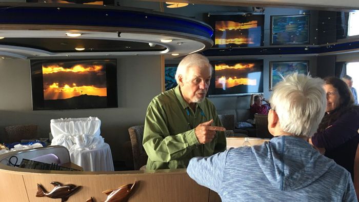 There was a full slate of fascinating and well-attended lectures in the lounge, National Geographic photographer Chris Rainier leading off with “Cultures on the Edge: Photographing for National Geographic in the 21st Century”, a collection of images and stories from his world travels on assignment for the magazine. Paul North, undersea specialist for National Geographic Orion, followed with “Plankton: The Importance of Small Things”, an introduction to plankton and critical issues involving our planet’s oceans. And author and seabird expert Peter Harrison presented “Ocean Nomads”, a beautiful and passionate tribute in words and images to his 50 years studying albatrosses around the world.