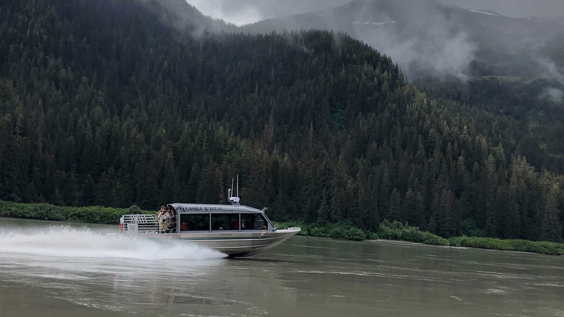 Our amazing expedition leader, Dana, tells us at breakfast what she has planned for us, and we all cheer as the day’s activities are explained. First, a tour of the Stikine River via jet boat with two destinations: Chief Shakes Lake and Shakes Glacier! Breathtaking Sitka spruce filled forests are kissed with low hanging clouds, and we encounter bald eagles and heaps of harbor seals on our way to and from Shakes Glacier. Next, we head to Chief Shakes Big House, which is set on one of the most sacred bits of land in Wrangell for the Tlingit tribe, Shakes Island. Here we are met by an elder of the Tlingit tribe, Virginia, who teaches us a bit about their lives, traditions, stories, and history. We are invited to enter ‘Chief Shakes Big House,’ a sacred house where many important things take place, all tribal related. Only those invited are allowed to enter this house, and we are welcomed guests. Jaw-droppingly magnificent totem poles are all around this bit of land. The Tlingit tribe does not typically upkeep their totem poles. They believe that once the carving is completed, the earth will slowly take back the totem, returning the wood to Mother Earth. They follow this same practice with their homes. Rather than remodel, they allow the earth to reclaim the materials used to make the home and then build a new one.