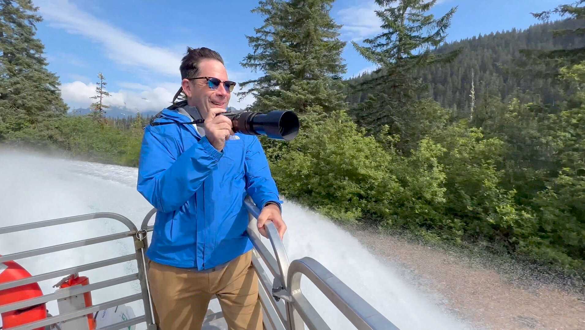 Today we woke to still water, overcast skies and the quaint dock fronting the small town of Wrangell, Alaska. After breakfast some guests opted for a trip up the Stikine River via jet boat. The Stikine is the largest river to cross through the Coastal Mountains into Canada, a large amount of this water flowing from the huge Stikine icefield. Jetboats glided past cottonwood and Sitka spruce up to large tidal flats filled with glacial till. Guests enjoyed threading their way through this complex system of braided channels, wetlands, islands, mud and grass flats, encountering ice washed downstream from the glacier. Running the flats was the best part for many—the pilot, James, had been exploring these flats since he was 11 years old!