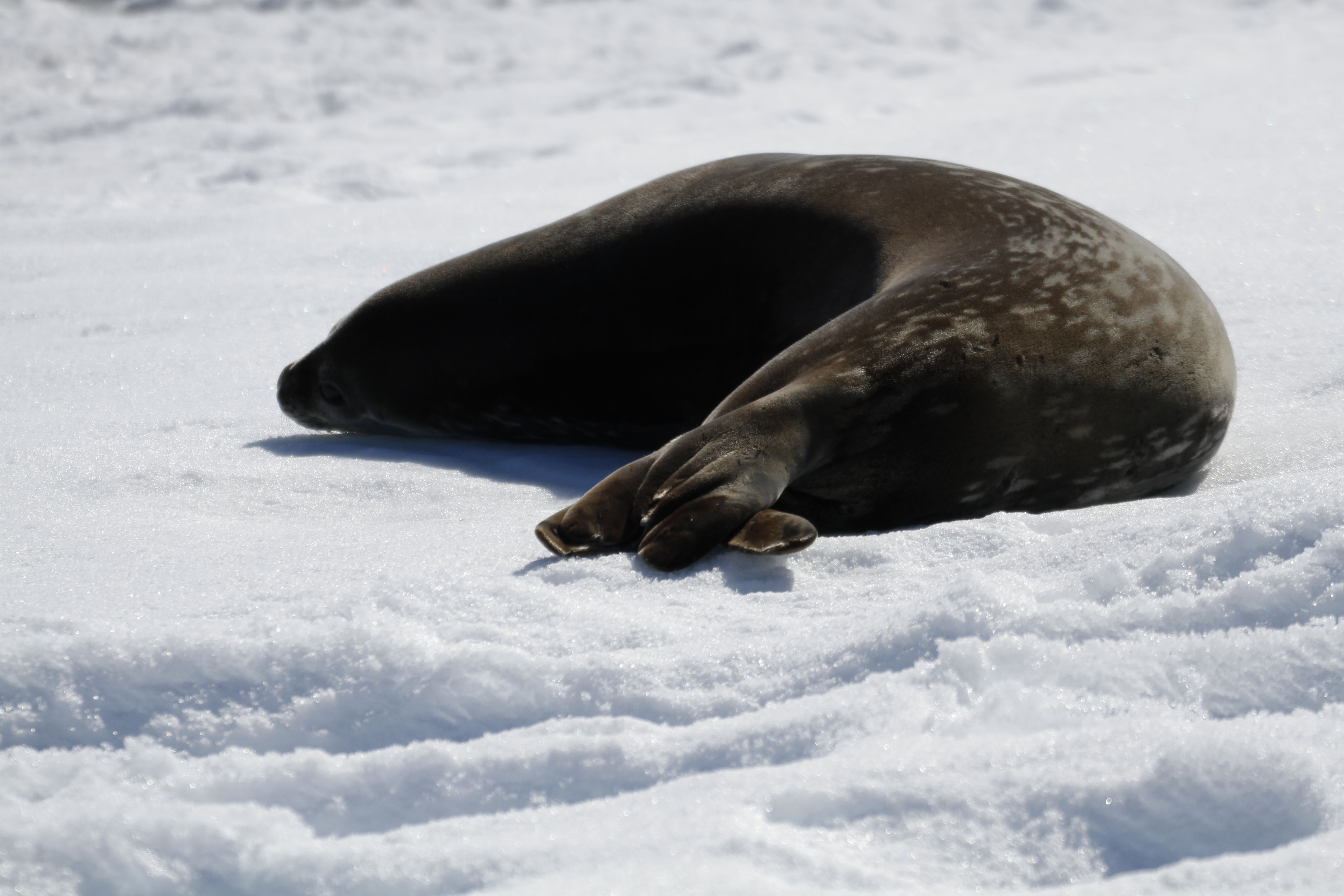 After another delicious breakfast, served up by our extraordinary team in the galley, our morning started off in Zodiacs exploring the Yalour Islands. The islands are named after Lieutenant Jorge Yalour, an Argentine Navy officer of the corvette Uruguay, which came to the rescue of the shipwrecked Swedish Antarctic Expedition in November 1903. As we pushed our way through a fairly heavy concentration of glacial and sea ice, we found crabeater seals resting atop the floes, gentoo and Adélie penguins, and also a minke whale.