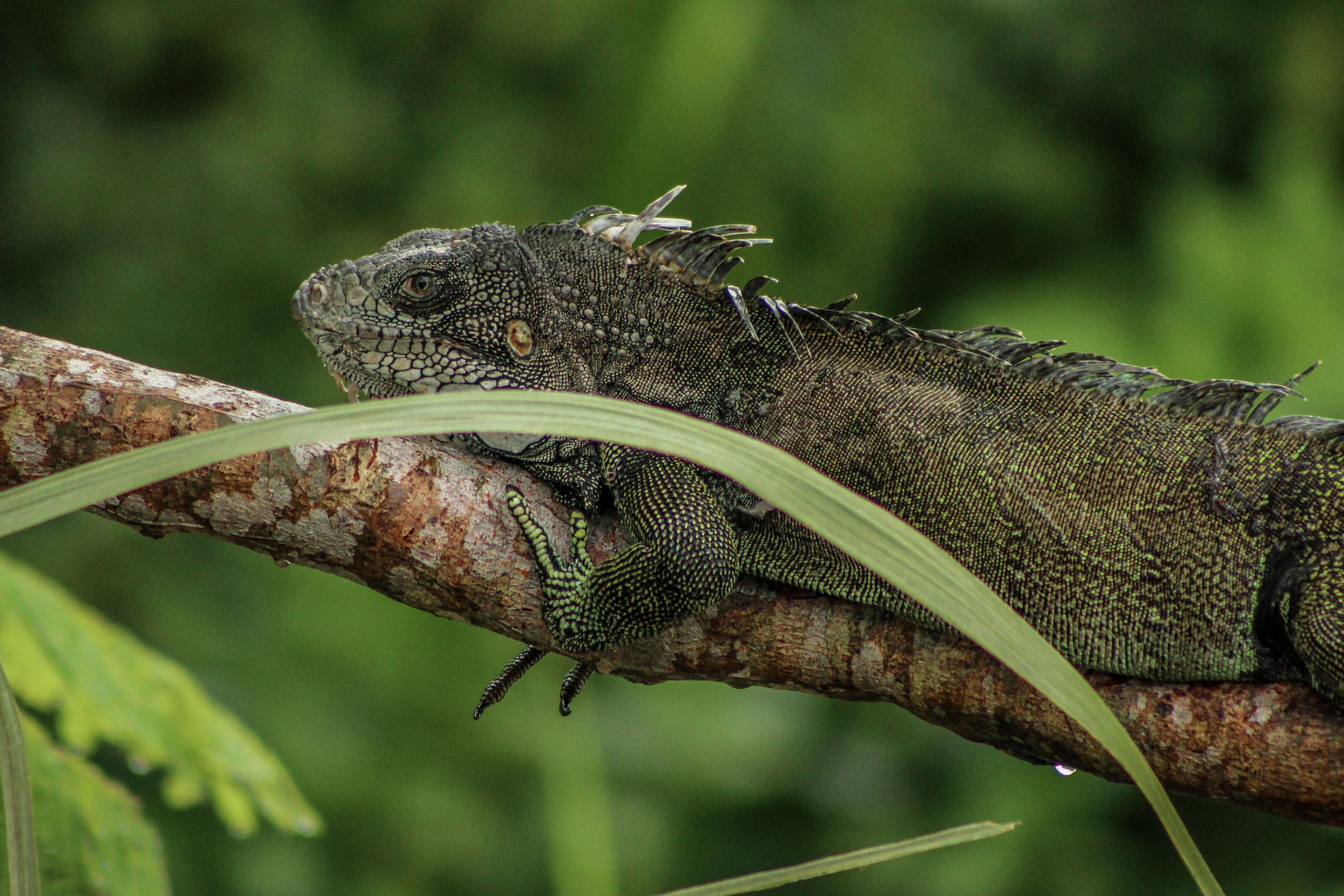 Today we planned on an early pre-breakfast outing, but we had to wait out the rain onboard the ship. On the riverbank, we spotted an iguana right next to the ship. It was the perfect opportunity for pictures. Later in the morning, we explored a hidden lagoon next to Yanayacu River. We navigated through the floating vegetation and found an abandoned horned screamer nest. We could see eggs from up close.