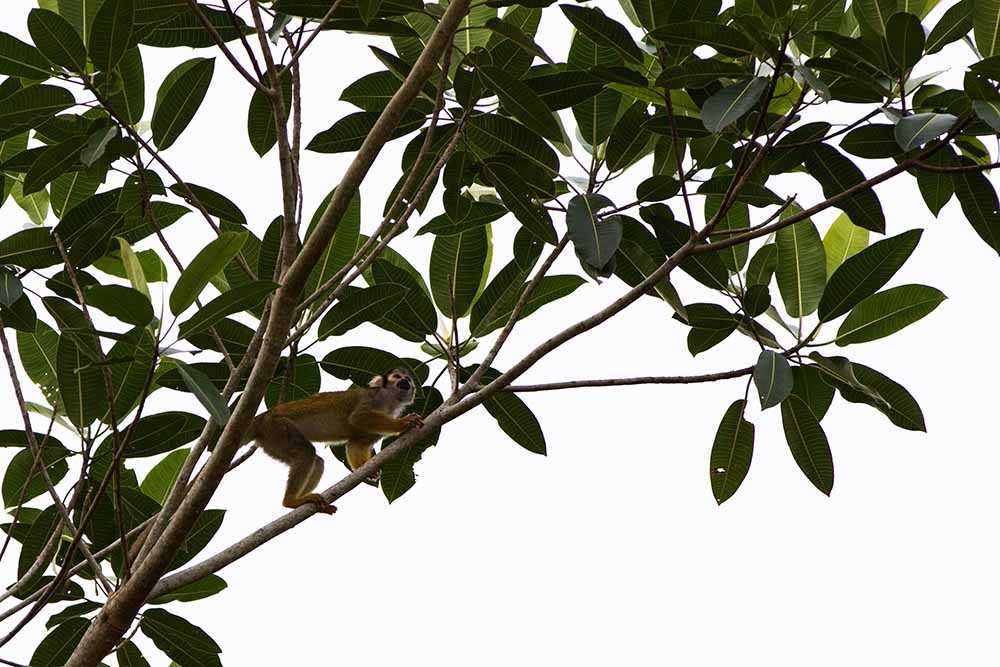 As we explored Yanayaquillo Creek, we encountered our first pod of pink river dolphins!  The adults and juveniles were foraging. Pink river dolphin are often found in black water creeks and flooded forests, while the smaller gray dolphins inhabit large rivers. Later on, we came across squirrel monkeys and saddle-backed tamarins, all seemed to be in a hurry as they scrambled along vines and jumped from branch to branch.
