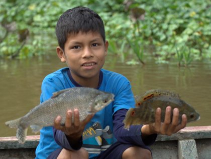 Along the river, we could see many fishermen, deep in concentration as they checked their fishing nets for today’s catch. The most common fish were armored catfish, Oscars, peacock bass, and “Doncellas” catfish. Each of them kindly showed us their catch. Most of the village people along the Amazon basins depend on these fishing activities.