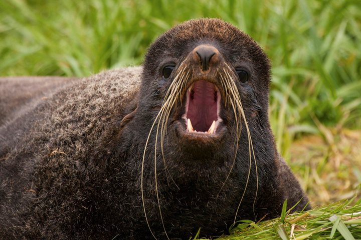 This morning, guests of National Geographic Endurance awoke in the middle of the South Atlantic. This is a unique crossing. As the ship transits from Puerto Madryn to the sub-Antarctic island of South Georgia, those aboard are privy to special sightings and experiences. Many seabirds rely on the building waves and wind that we observed as we near the Southern Ocean. A great force, the Southern Ocean circles Antarctica with unbroken strength. This energy creates a strong barrier, isolating Antarctica biologically and ecologically. Albatrosses, petrels, and prions use the wind to soar just above the waves, using their strong senses to identify prey in the water. These birds–Procellariiformes–have an incredible sense of smell, an adaptation that naturalist Conor Ryan shared with guests today during a morning lecture entitled, “The Smell of the Sea.” What we consider the smell of the sea is actually dimethylsulfide (DMS), which is released by organisms like phytoplanktonic diatoms. Diatoms become food for many primary consumers, including copepods and Antarctic krill. These primary consumers are, in turn, excellent prey for seabirds searching for their next meal. As they swoop from wave to wave, the birds actively hunt. On this crossing, we have been lucky enough to view the largest seabird of them all, the wandering albatross. This bird can have a wingspan of two meters, over six feet. Wandering albatrosses are monogamous and mate for life. With long lives, sometimes these animals produce offspring into their 60s. Royal albatrosses are their slightly smaller counterpart, and they tend to be rarer in this part of the world. With more black coloring on their wings and a less pink bill, they are a species that may be easily confused with the wanderer.