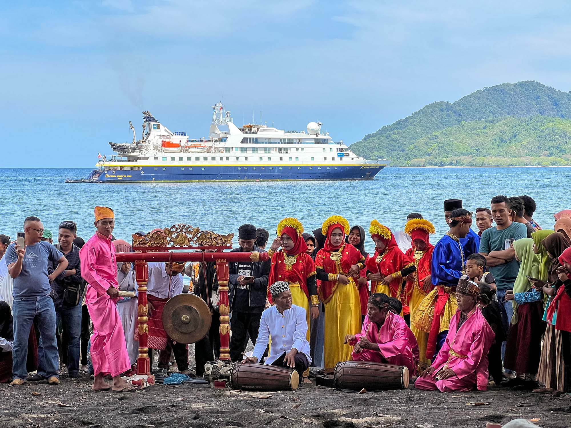 At the beach we were greeted by a folkloric group of Guna flute dancers. —Max Vindas, Expedition Leader (Photo by Jose Calvo)