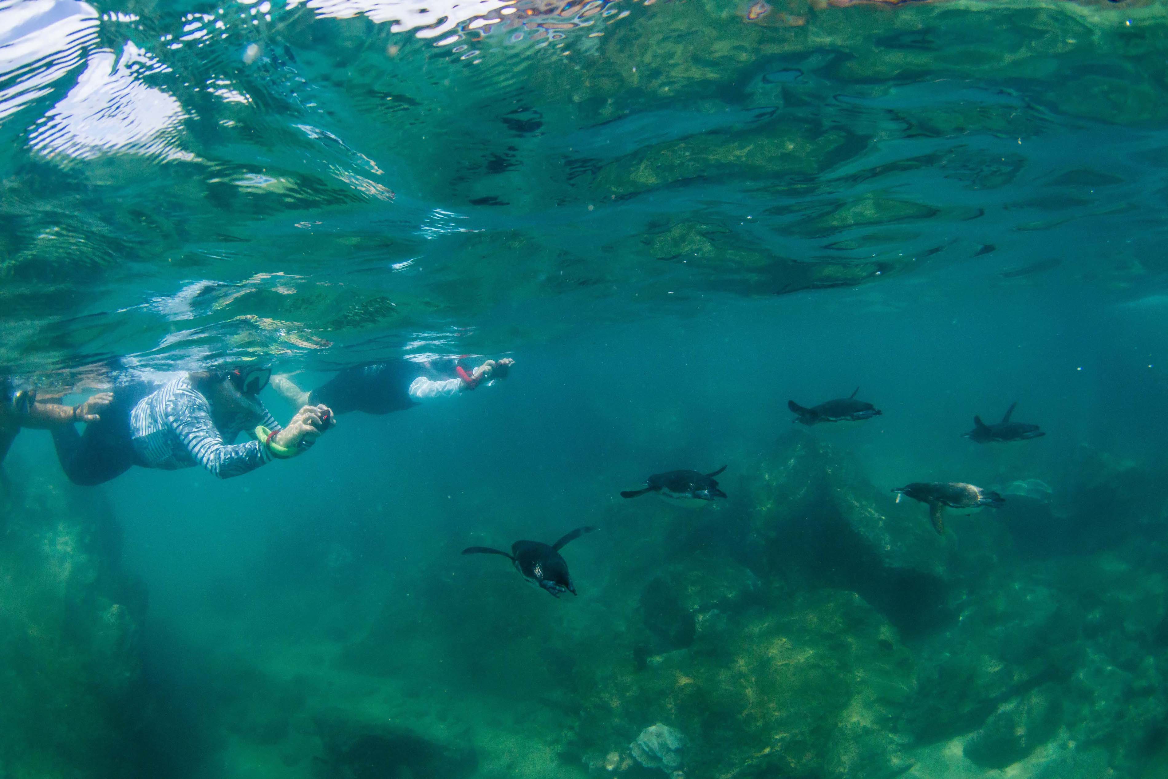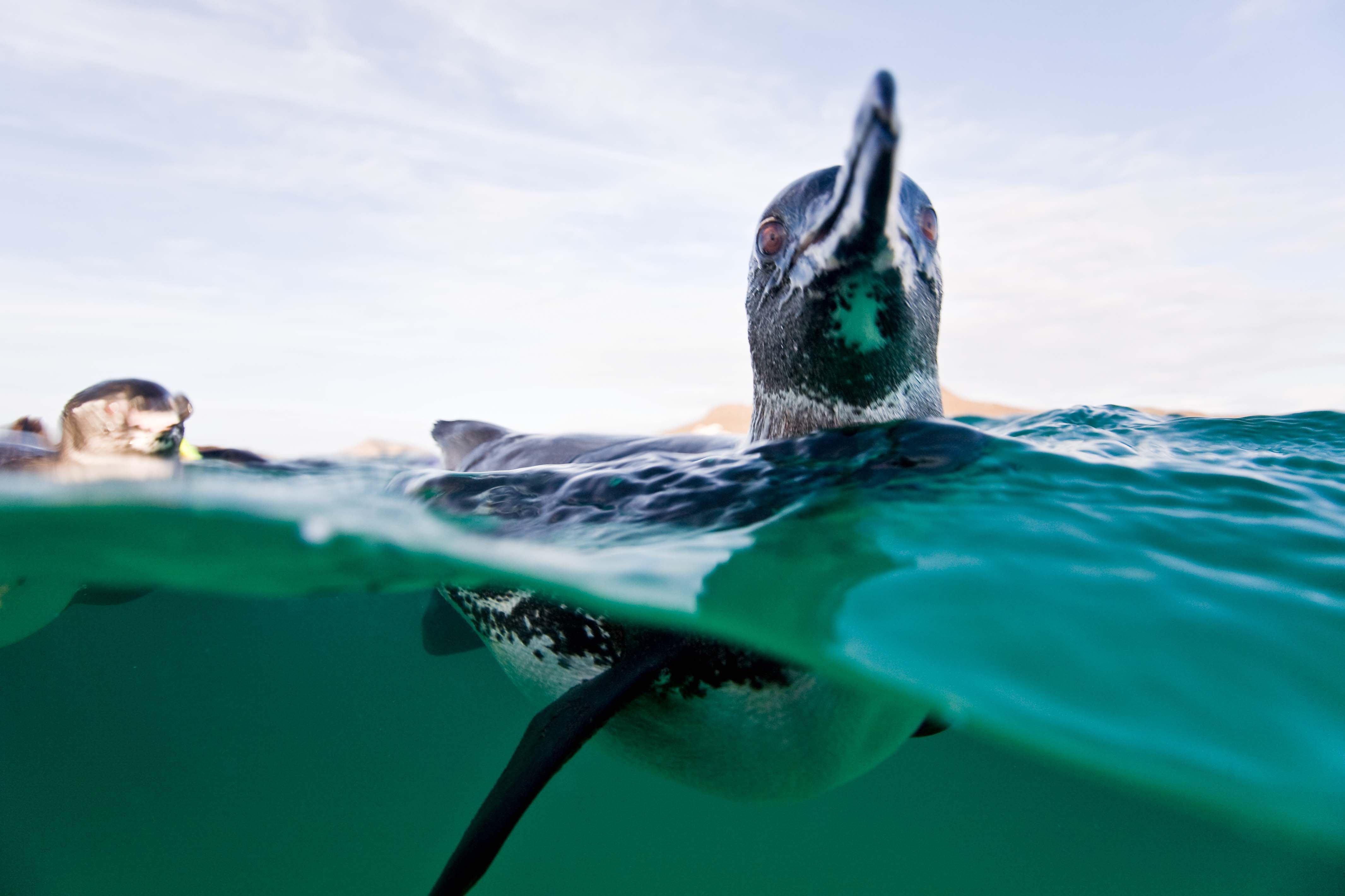 Imagine snorkeling alongside sea turtles and bright tropical fish when all of a sudden, a penguin zips past? That’s right: there’s a penguin that lives in Galápagos and it’s the northernmost penguin in the world. These tropical penguins are endemic to the legendary islands where it is thought they arrived from the south via an Antarctic current. Over time, these once cold-weather birds multiplied and adapted to their new warmer surroundings. They lost some of the fat they no longer needed and evolved to a smaller size. Today, these adorable island dwellers stand knee-high at about 19 to 20 inches tall.
